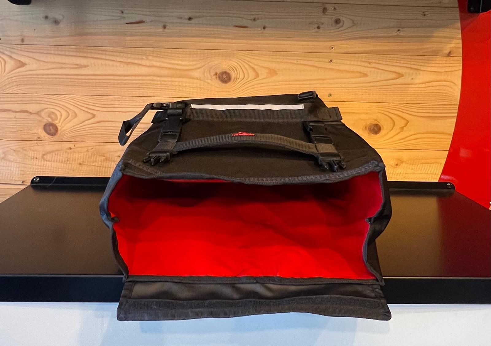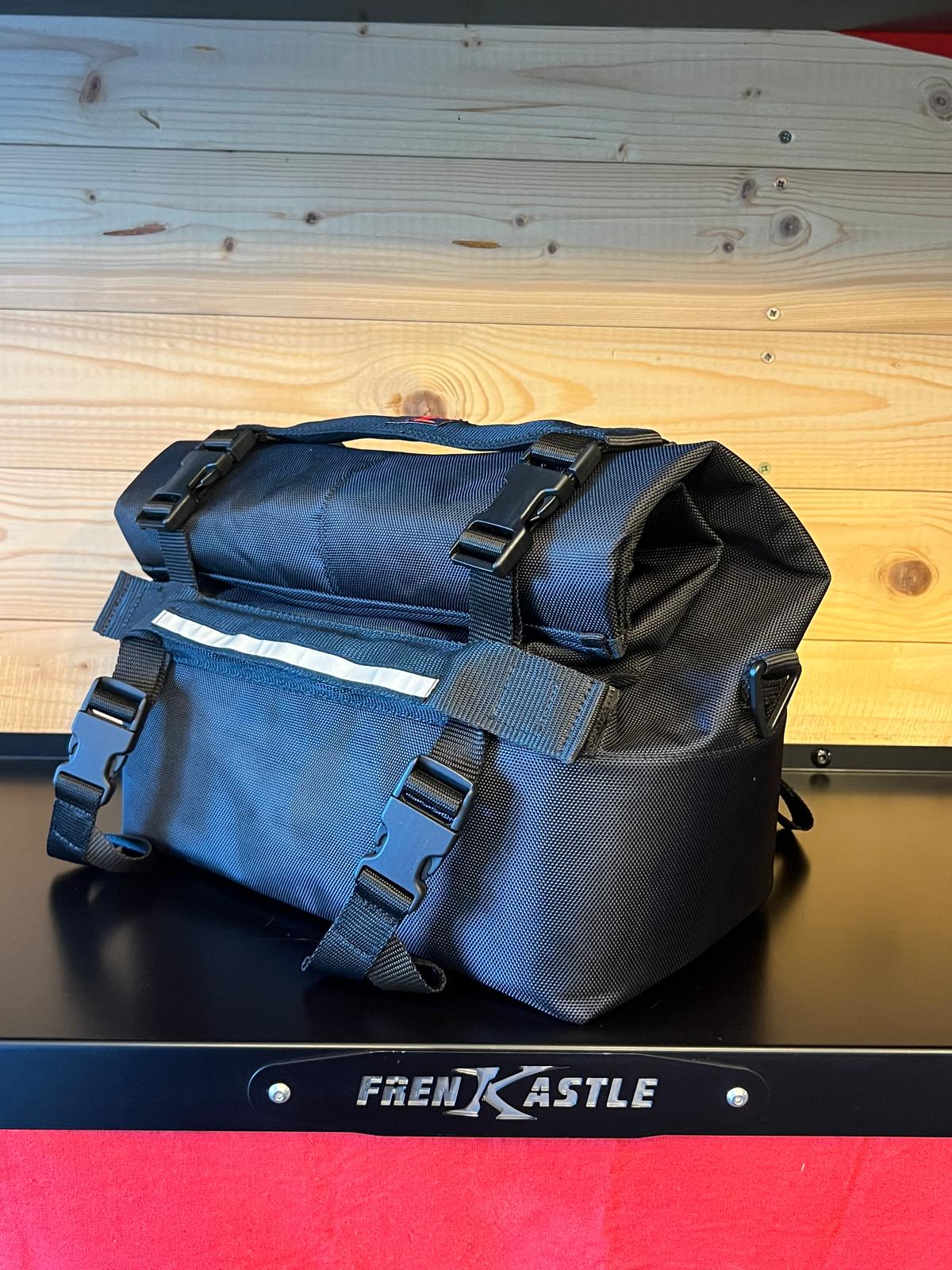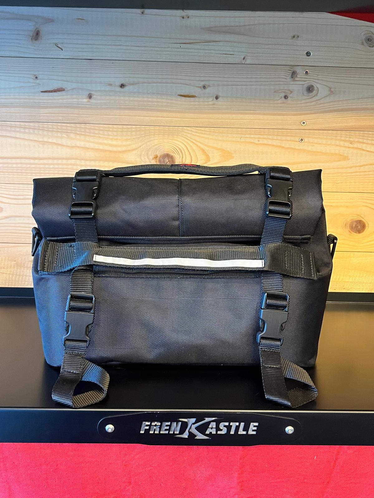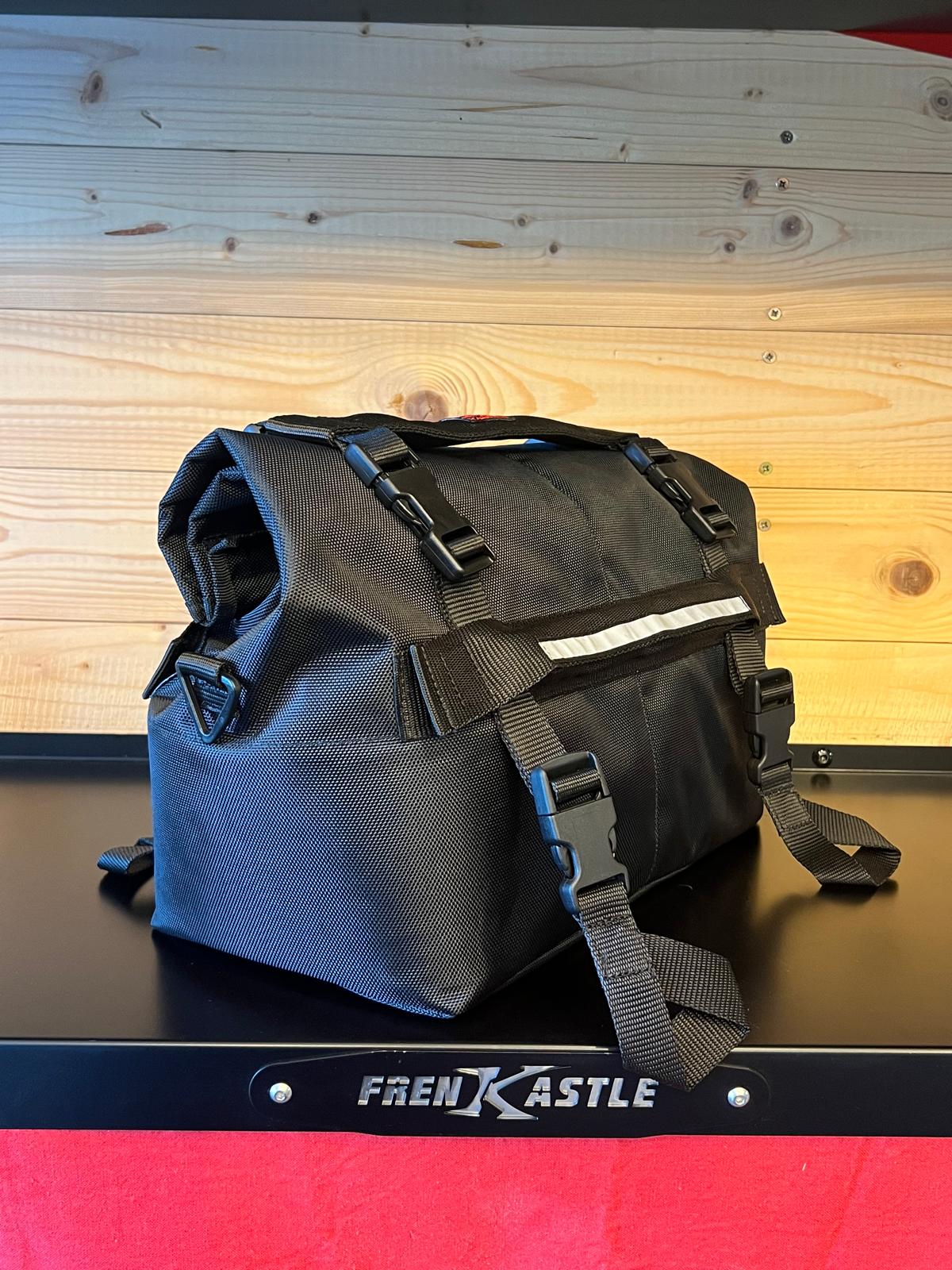 La chiusura a rotolo impedisce in modo affidabile l’ingresso dell’acqua anche durante corse sotto la pioggia, l’apertura su tutta la larghezza permette un comodo caricamento dall’alto. Il fissaggio della borsa è tramite 4 cinghie di tensione che sono attaccati alla borsa con chiusure a clip