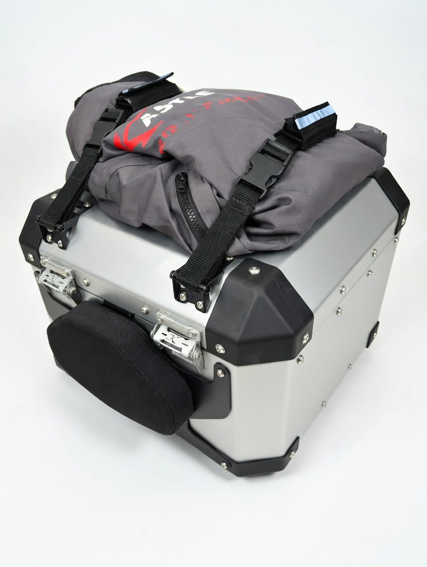Utilizzabile con tutte le valigie e i sistemi di trasporto FrenkCastle e con la maggior parte dei portapacchi moto.