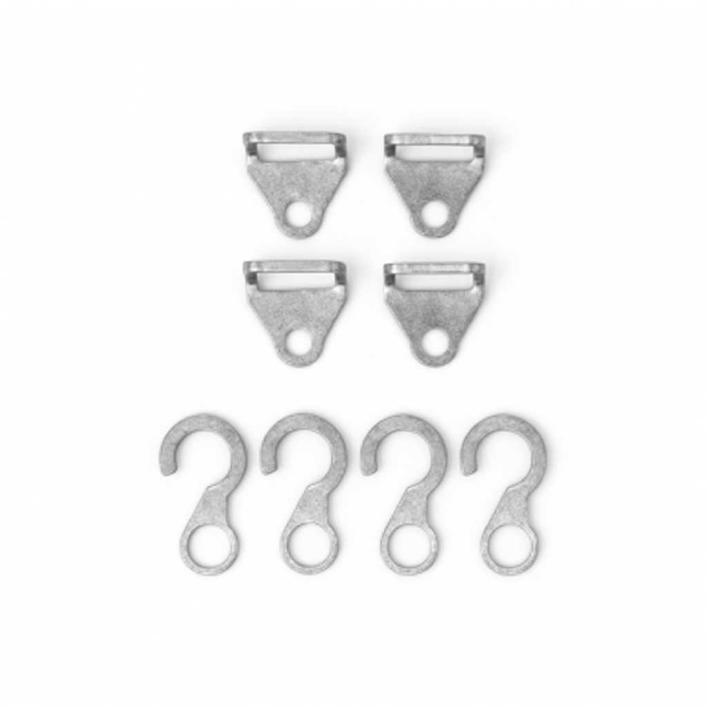 Ganci costruiti in acciaio inox dotati di viti per il fissaggio e gancetti per il montaggio delle reti sia su top case e valigie laterali.