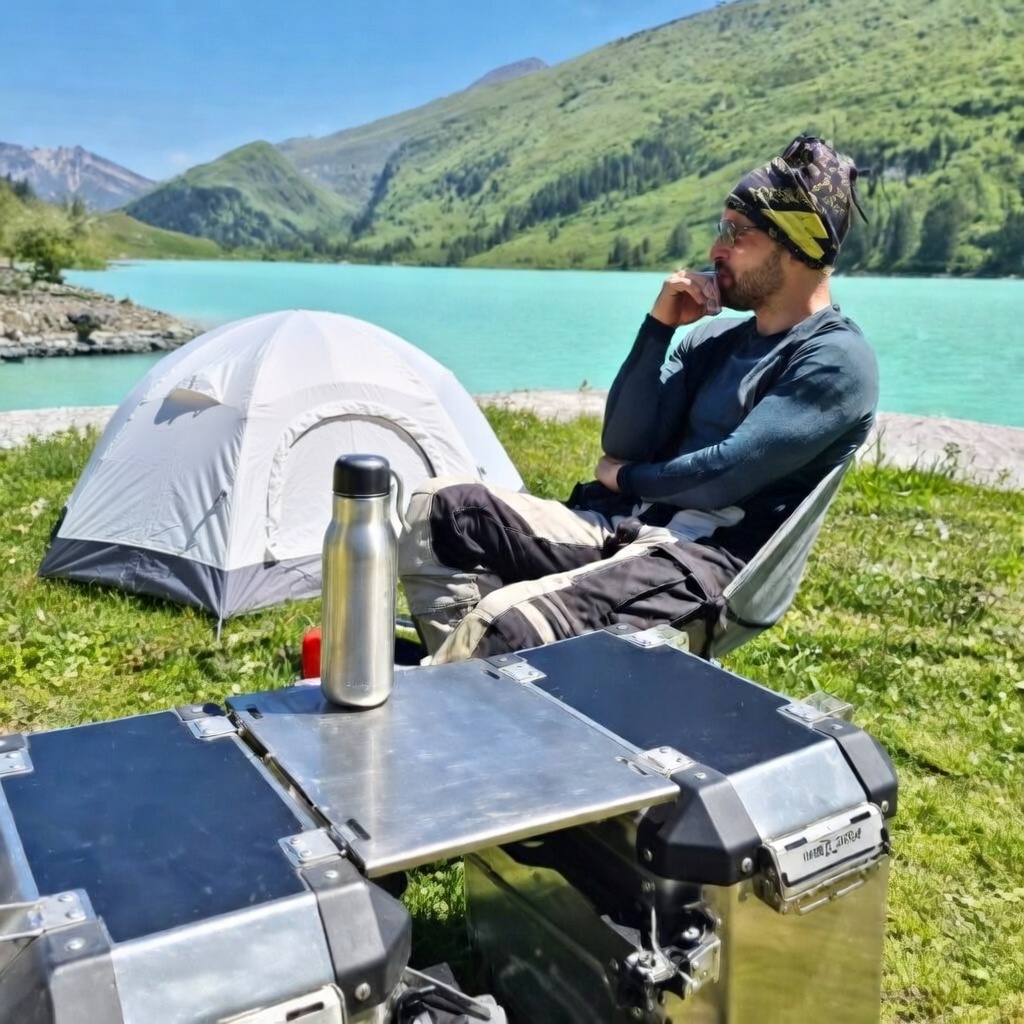 Il tavolino FrenkCastle è progettato per essere montato tra le valigie laterali, creando una superficie stabile e resistente, ideale per soste, campeggio e viaggi avventura.