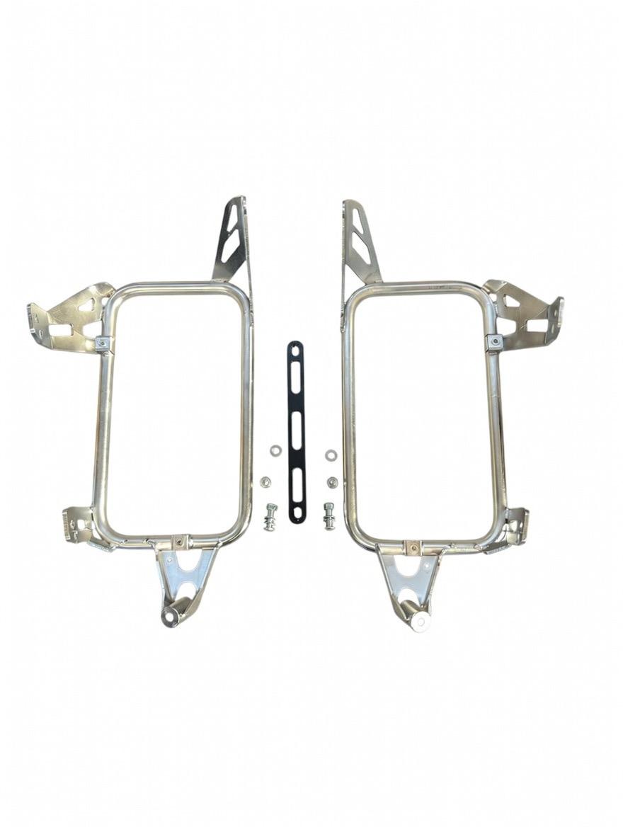 Progettato per il montaggio su BMW R1300GS Adventure, consente l’installazione di valigie laterali con anello di fissaggio 350 × 200 mm, uno degli standard più diffusi nel mondo adventure.